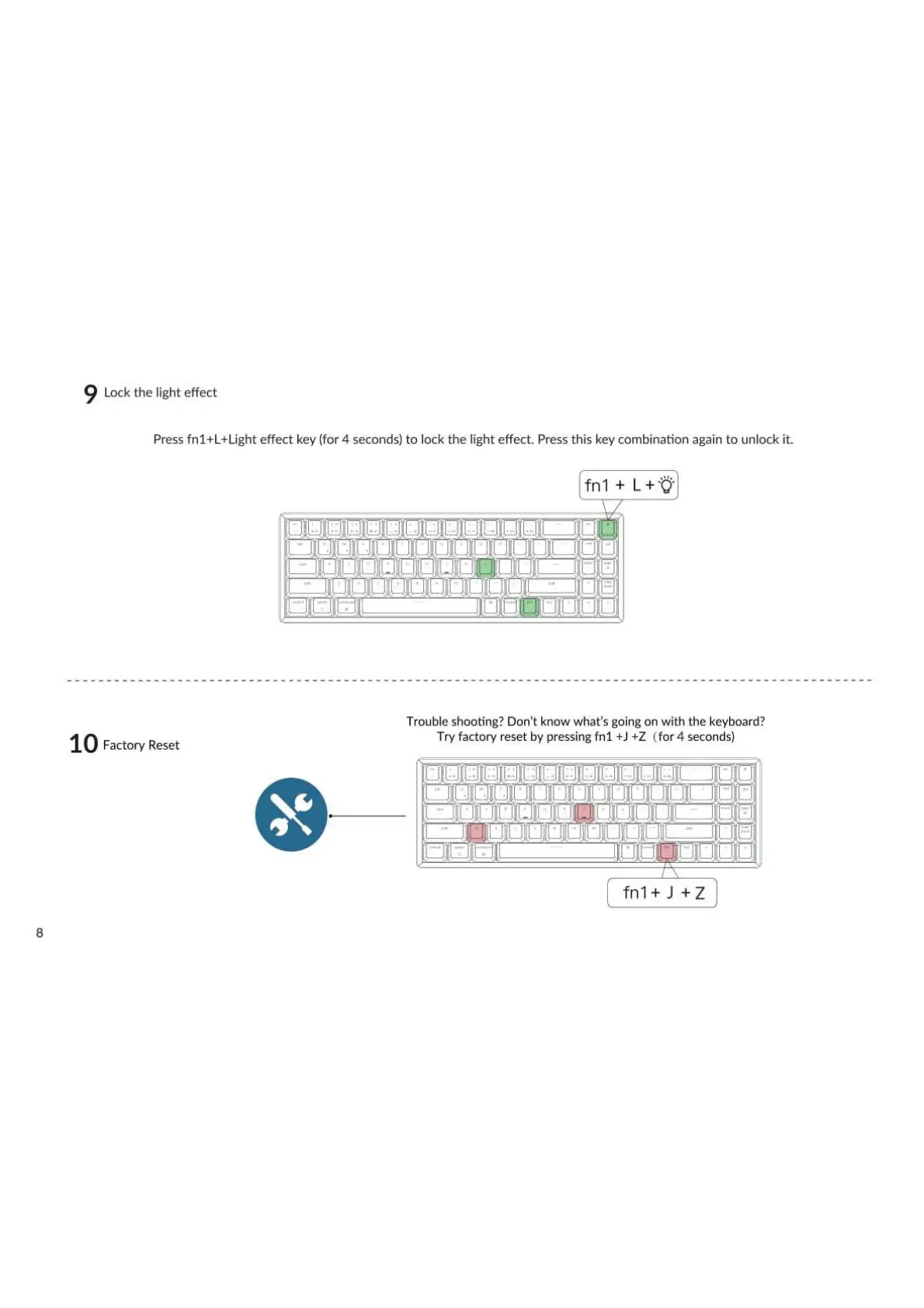 Keychron K14 - Maintenance and Reset Procedures; Lock Keyboard Lighting Effect; Perform Factory Reset