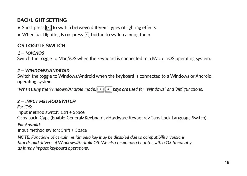 Switch the toggle to Windows/Android when the keyboard is connected to a Windows or Android