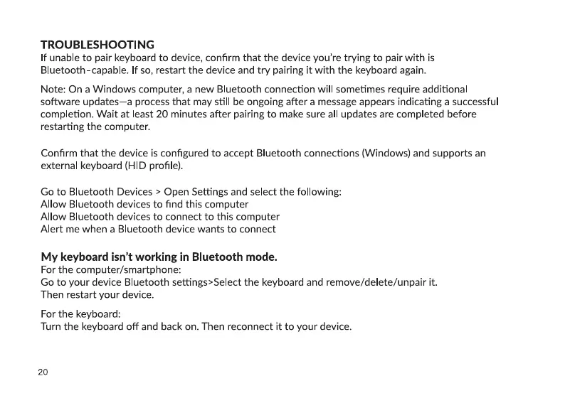 If unable to pair keyboard to device, confirm that the device you're trying to pair with is