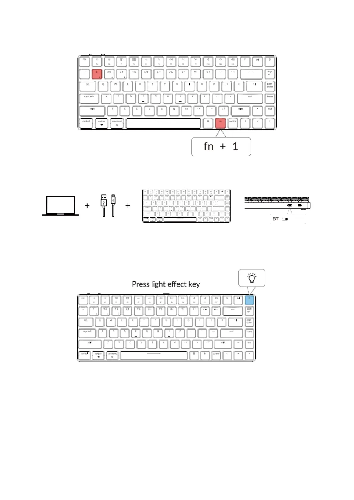 Stlačením tlačidla fn + 1 (na 4 sekundy) sa spárujete so zariadením Keychron K3.