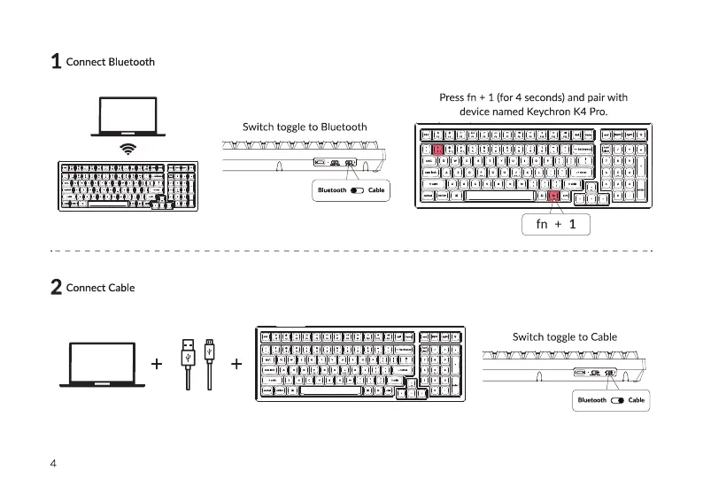 Keychron K4 Pro - Connecting via Bluetooth; Connecting via Cable