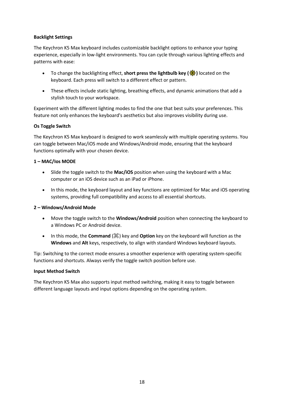 • In this mode, the keyboard layout and key functions are optimized for Mac and iOS operating