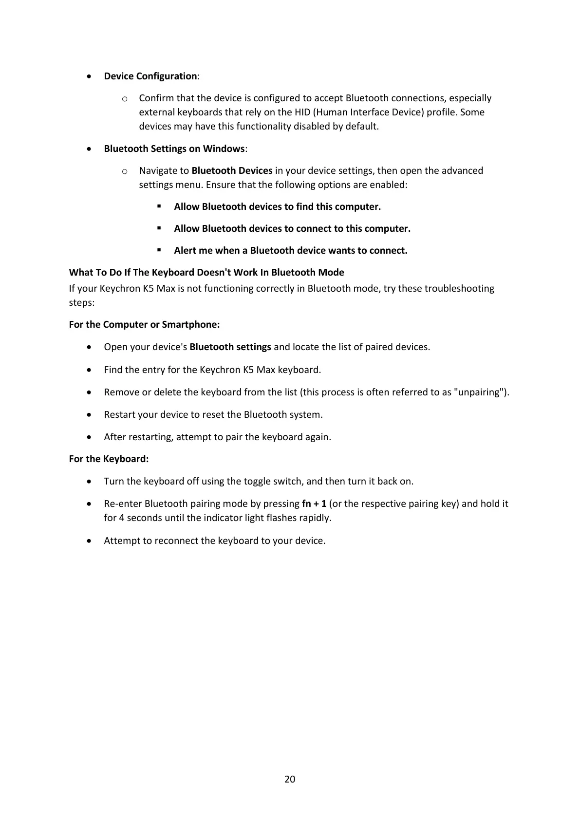 If your Keychron K5 Max is not functioning correctly in Bluetooth mode, try these troubleshooting