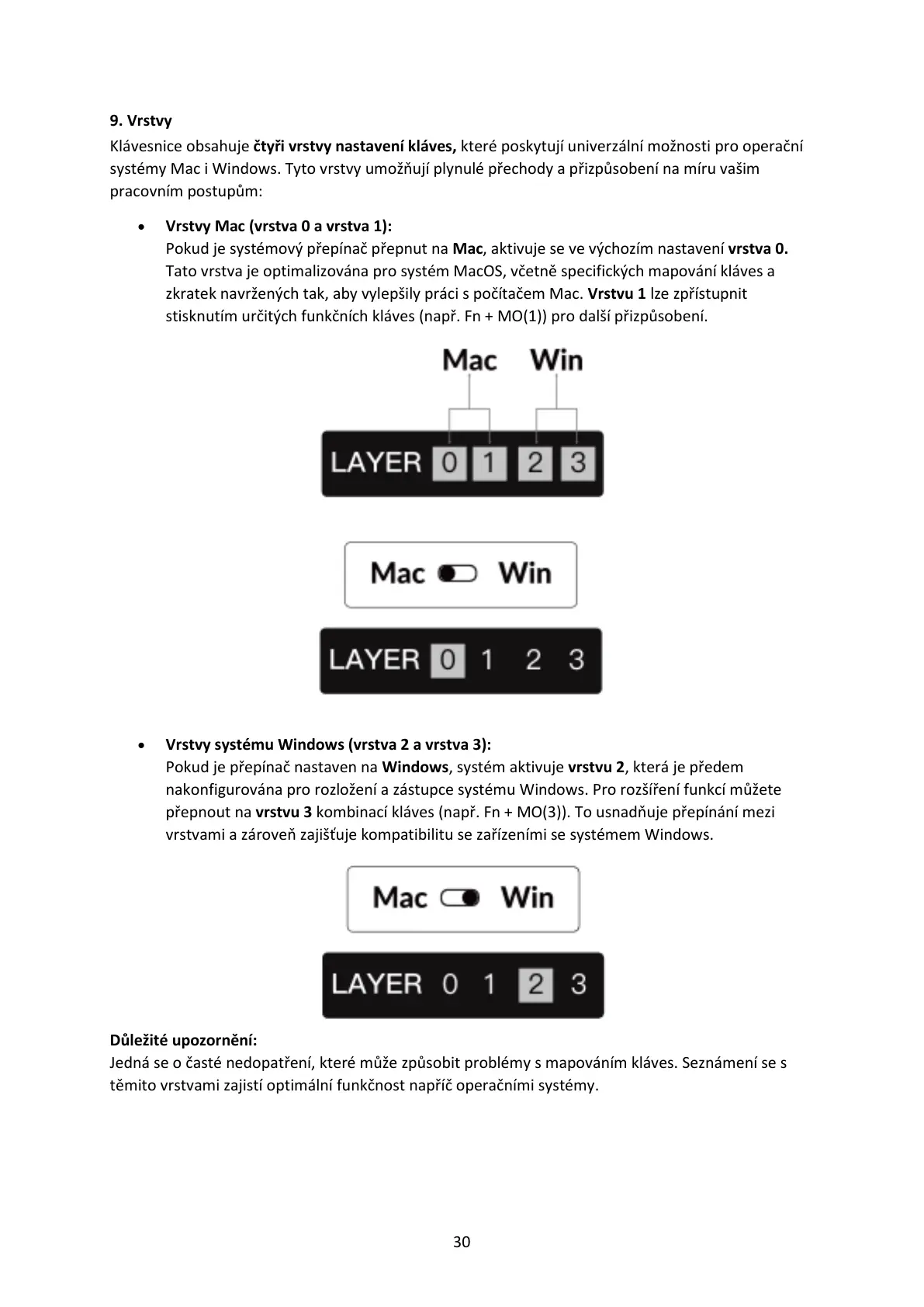 Pokud je systémový přepínač přepnut na Mac, aktivuje se ve výchozím nastavení vrstva 0.