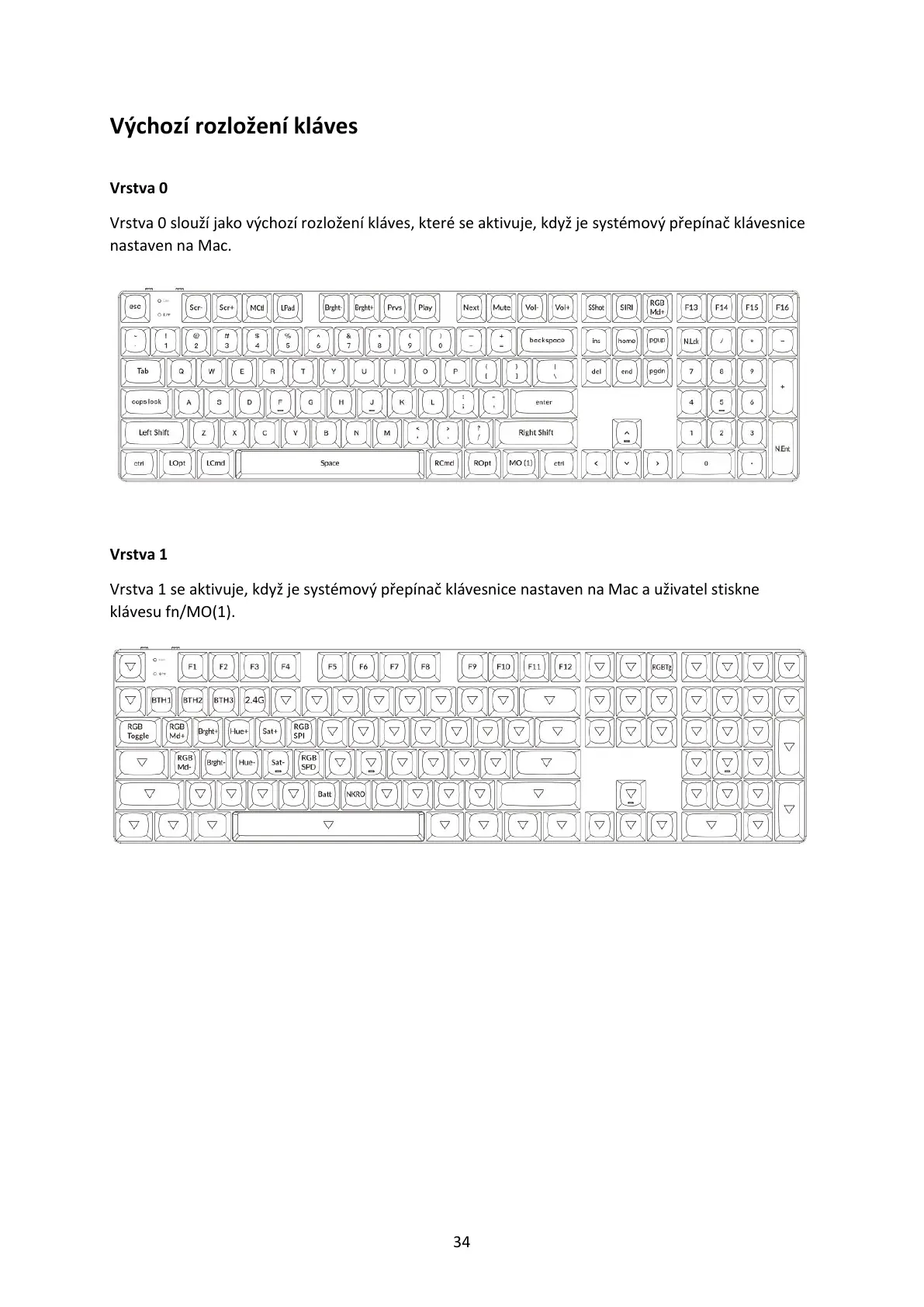 Vrstva 1 se aktivuje, když je systémový přepínklávesnice nastaven na Mac a uživatel stiskne