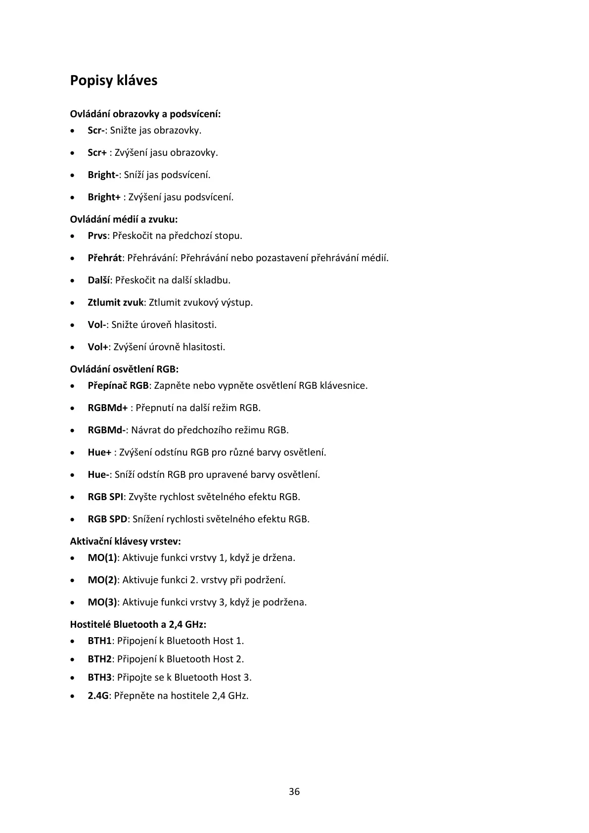 • MO(1): Aktivuje funkci vrstvy 1, když je držena.
