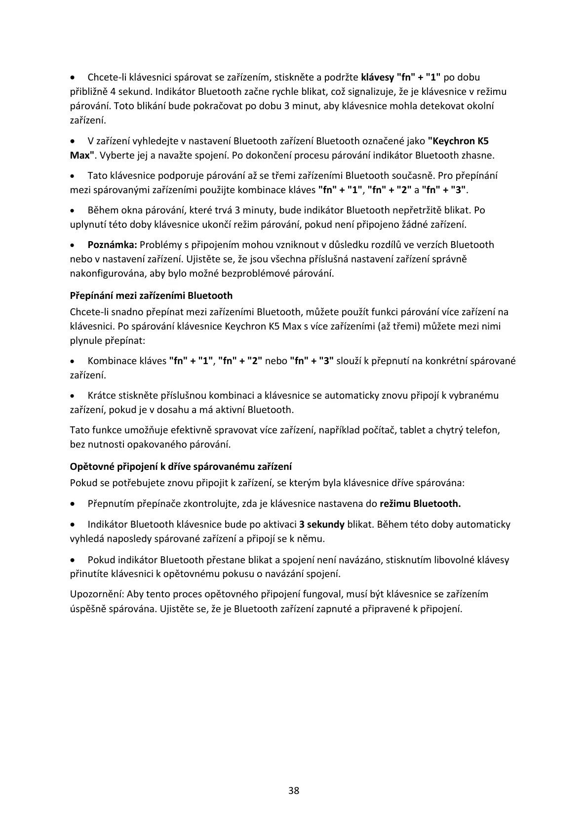 • Tato klávesnice podporuje párování až se třemi zařízeními Bluetooth současně. Pro přepínání