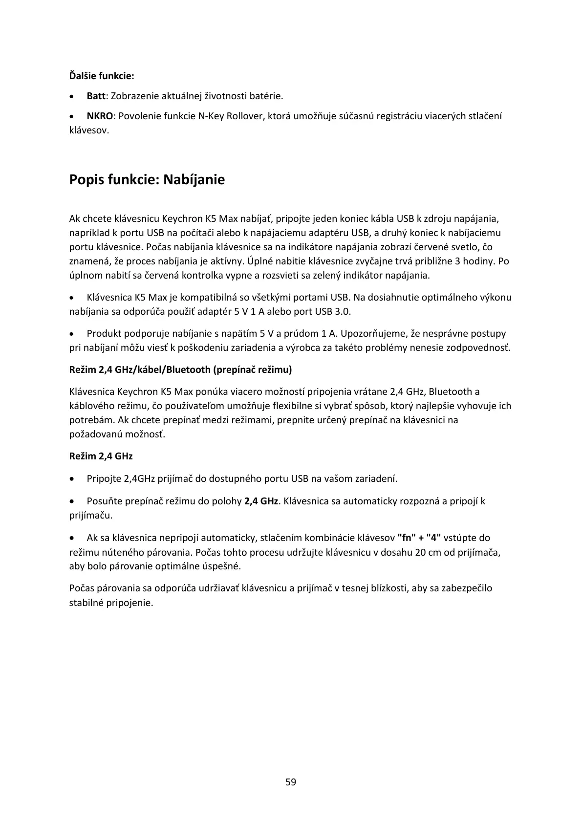 znamená, že proces nabíjania je aktívny. Úplné nabitie klávesnice zvyčajne trvá približne 3 hodiny. Po