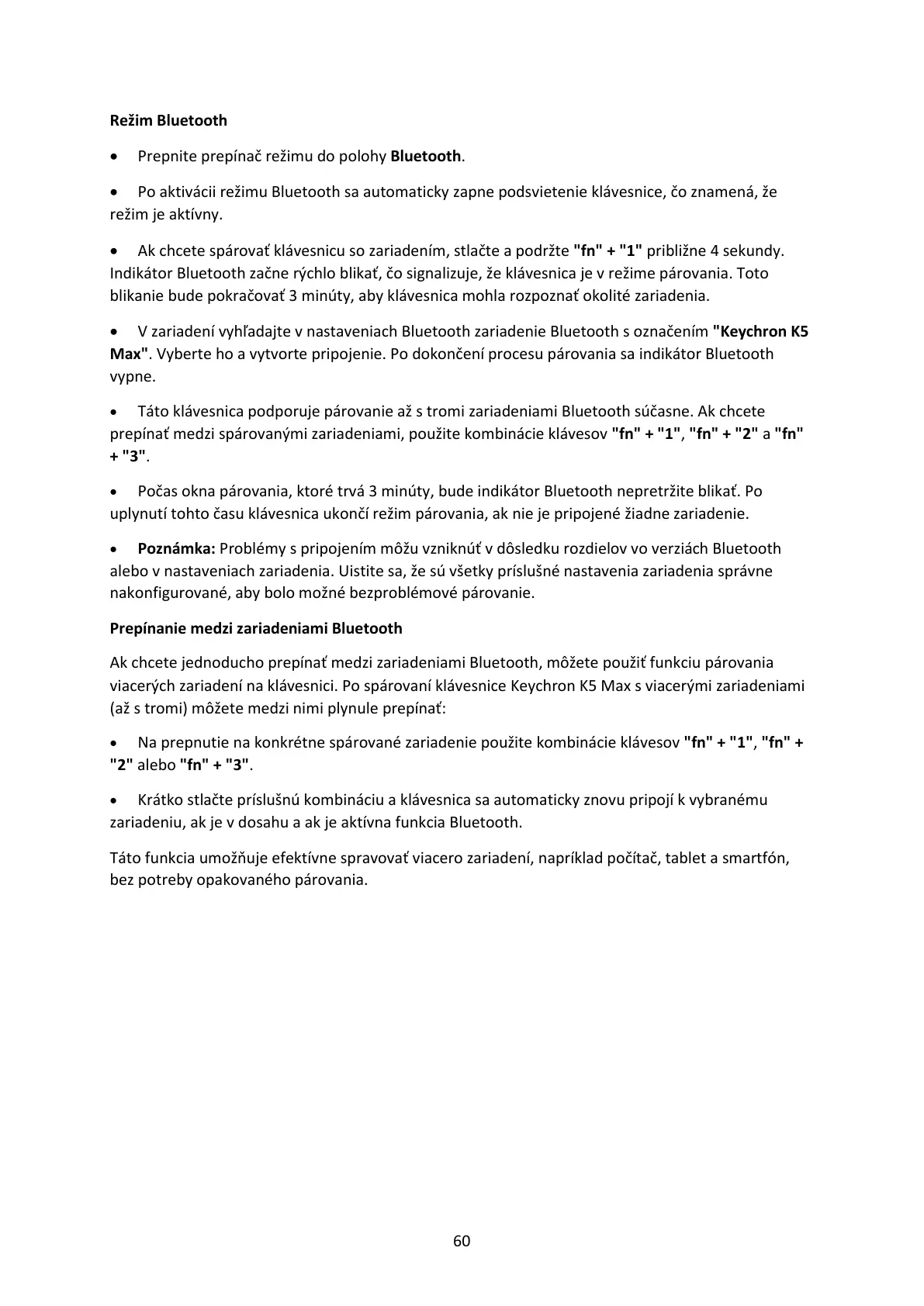 • Táto klávesnica podporuje párovanie až s tromi zariadeniami Bluetooth súčasne. Ak chcete