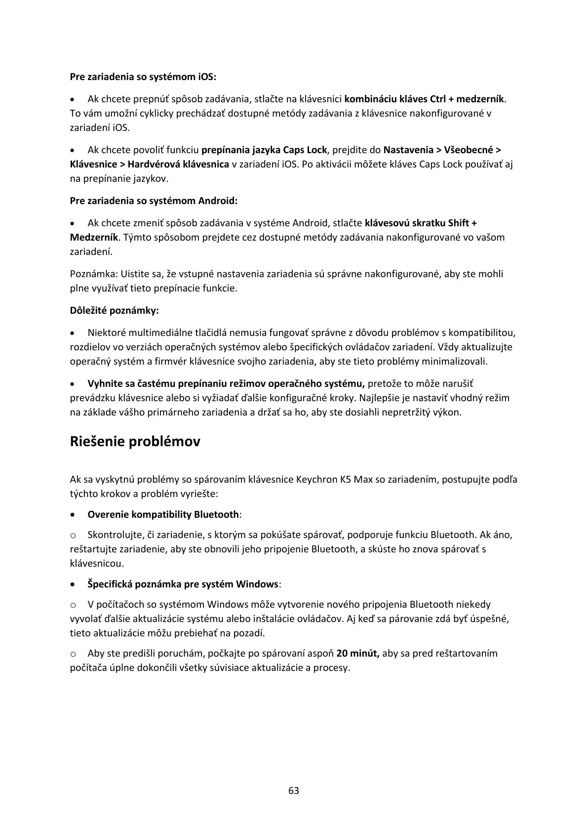 operačný systém a firmvér klávesnice svojho zariadenia, aby ste tieto problémy minimalizovali.