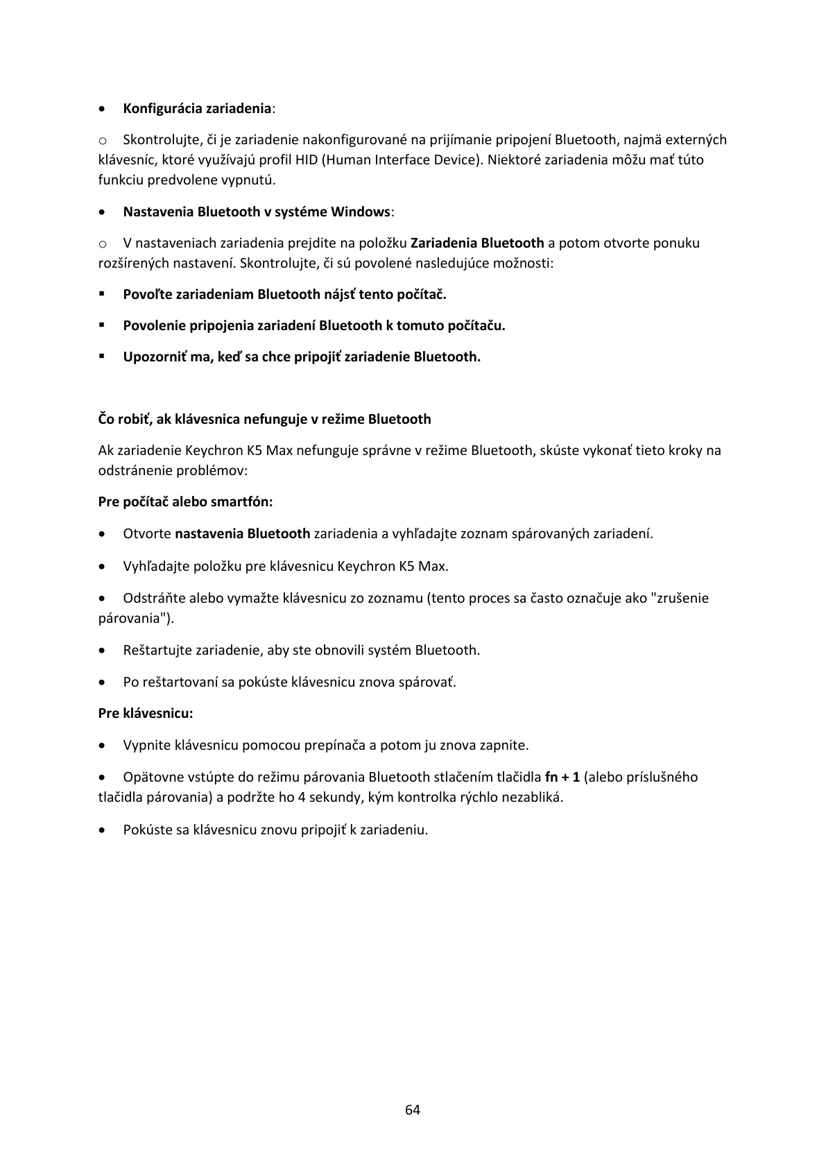 klávesníc, ktoré využívajú profil HID (Human Interface Device). Niektoré zariadenia môžu mať túto