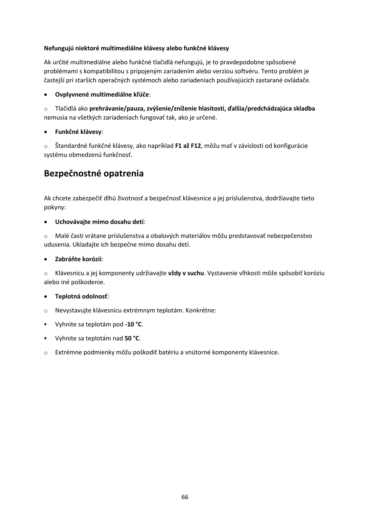 Ak chcete zabezpečiť dlhú životnosť a bezpečnosť klávesnice a jej príslušenstva, dodržiavajte tieto