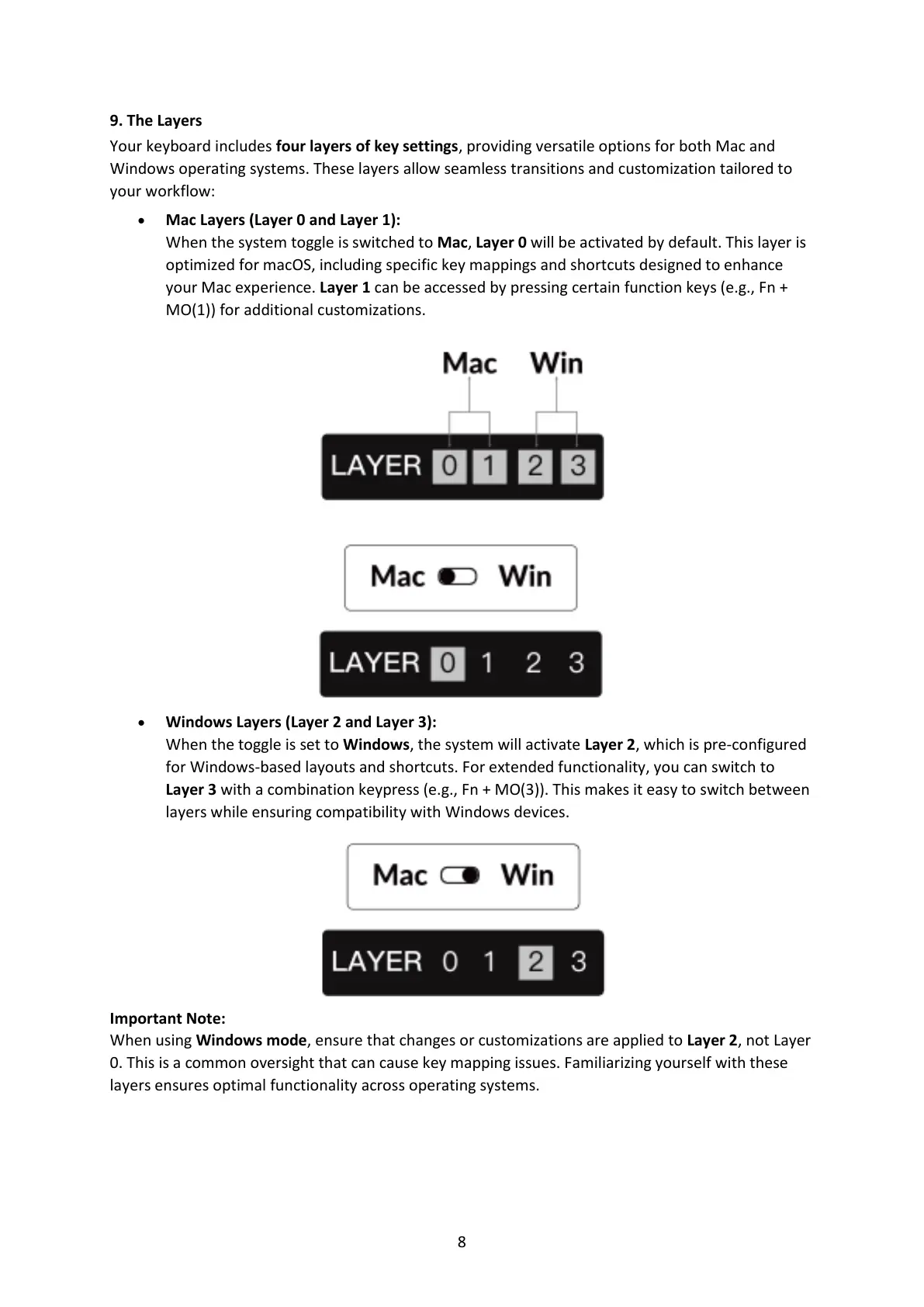 When the system toggle is switched to Mac, Layer 0 will be activated by default. This layer is