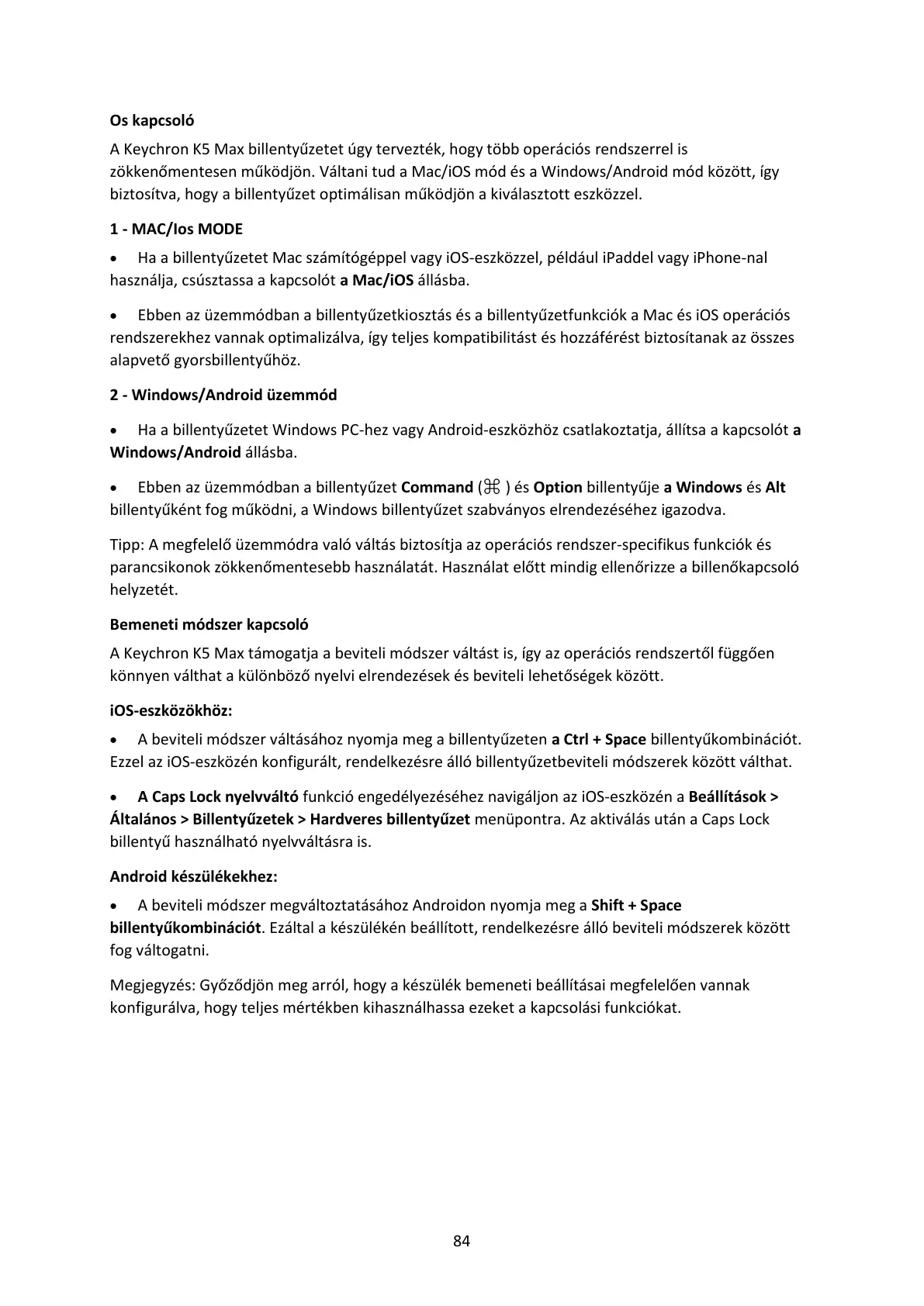 A Keychron K5 Max támogatja a beviteli módszer váltást is, így az operációs rendszertől függően
