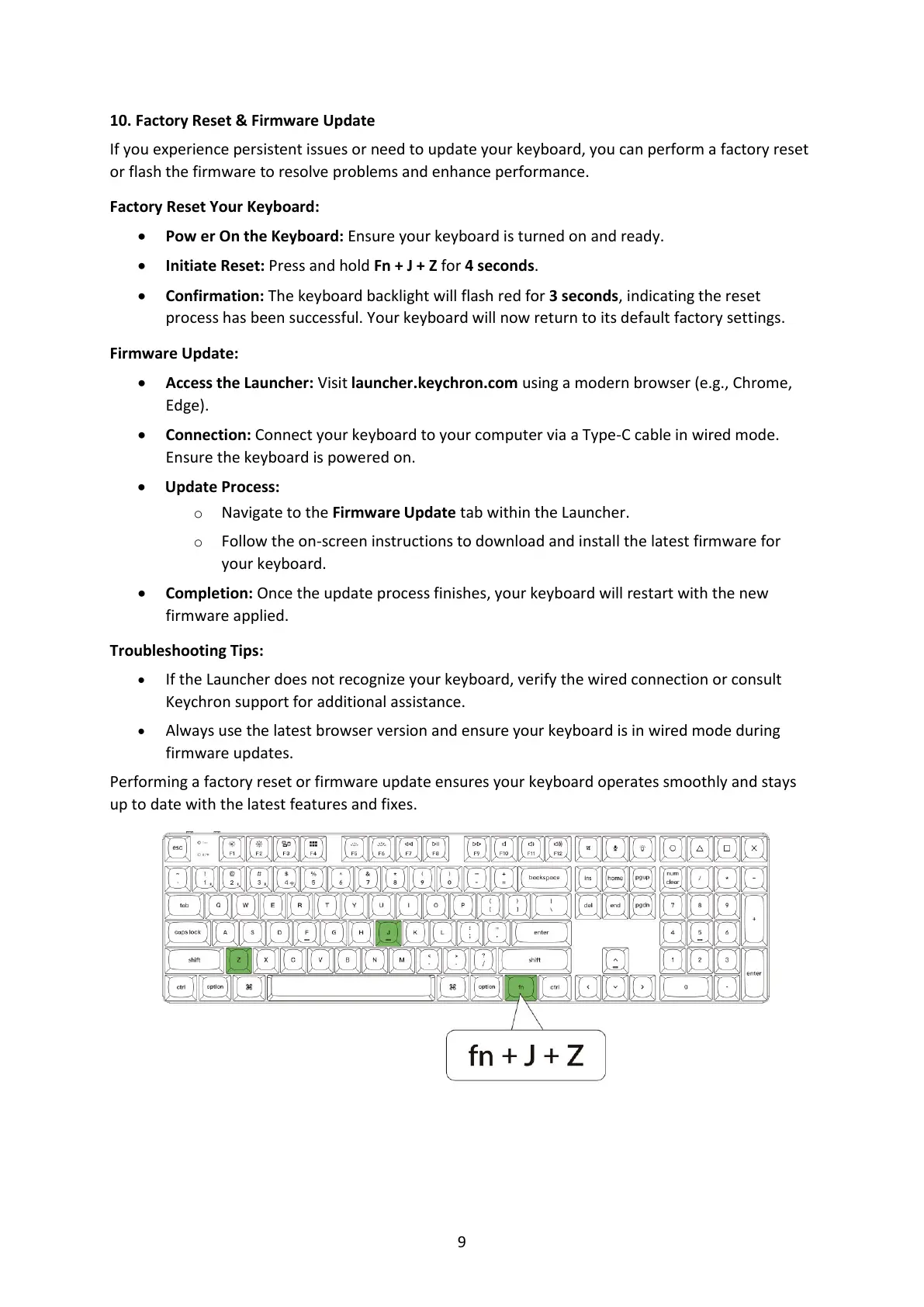 • Initiate Reset: Press and hold Fn + J + Z for 4 seconds.