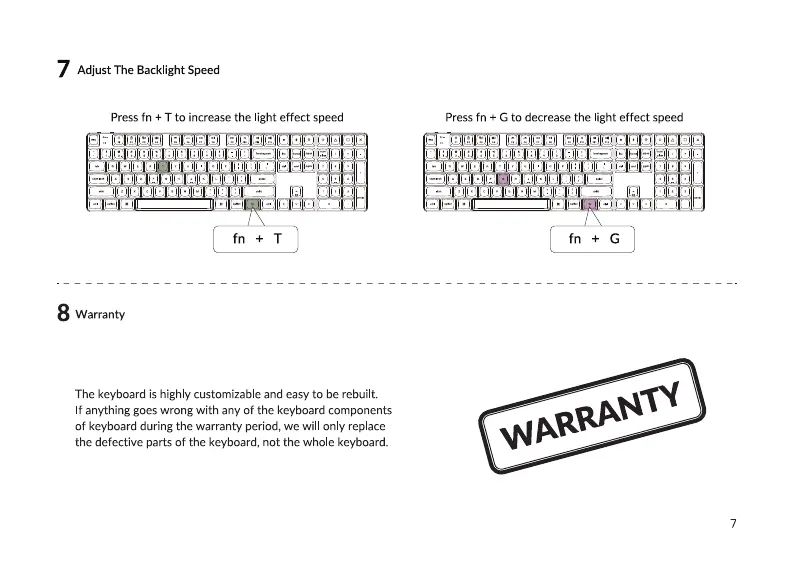 Pressfn + T to increase the ight effect speed Pressfn + G to decrease the light effect speed