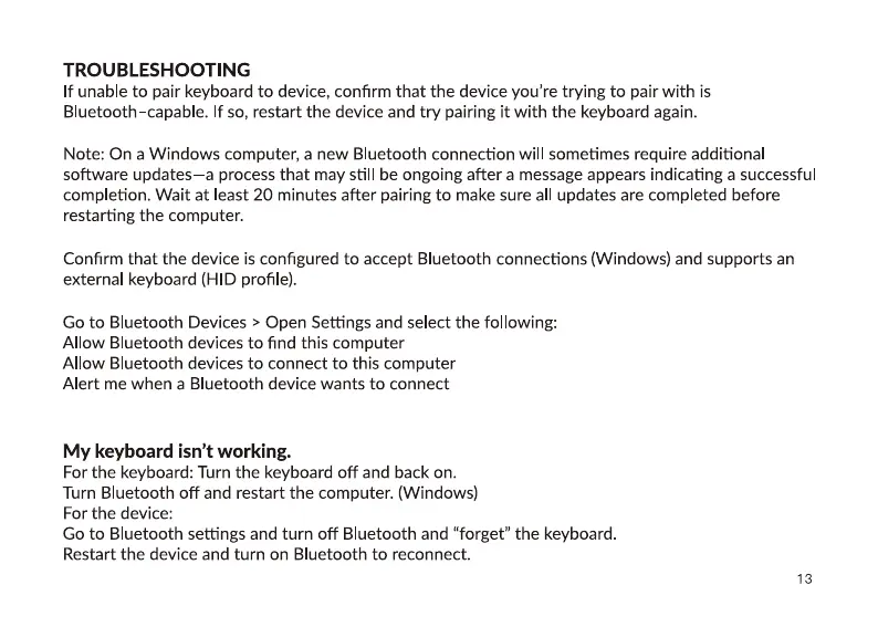 If unable to pair keyboard to device, confirm that the device you're trying to pair with is