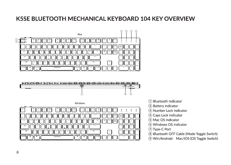 K5SE BLUETOOTH MECHANICAL KEYBOARD 104 KEY OVERVIEW