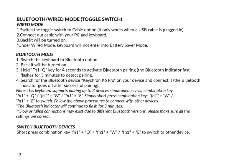 Note: This keyboard supports pairing up to 3 devices simultaneously via combination key