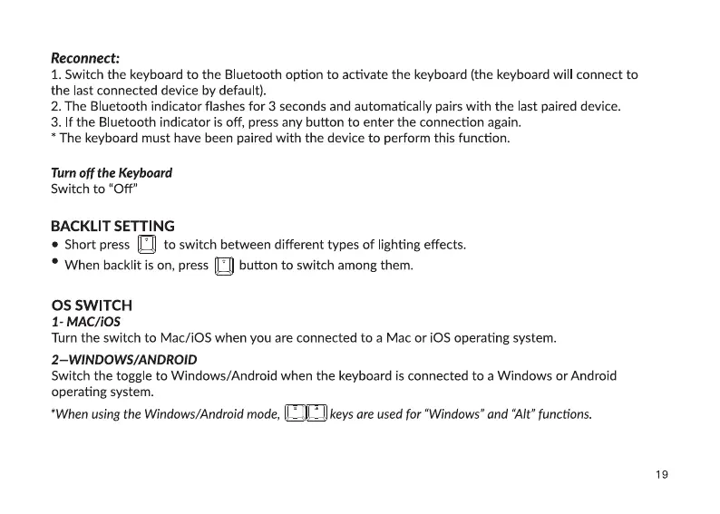 *When using the Windows/Android mode, keysare used for "Windows" and "Alt" functions.