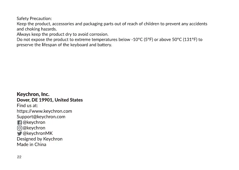 preserve the lifespan of the keyboard and battery.