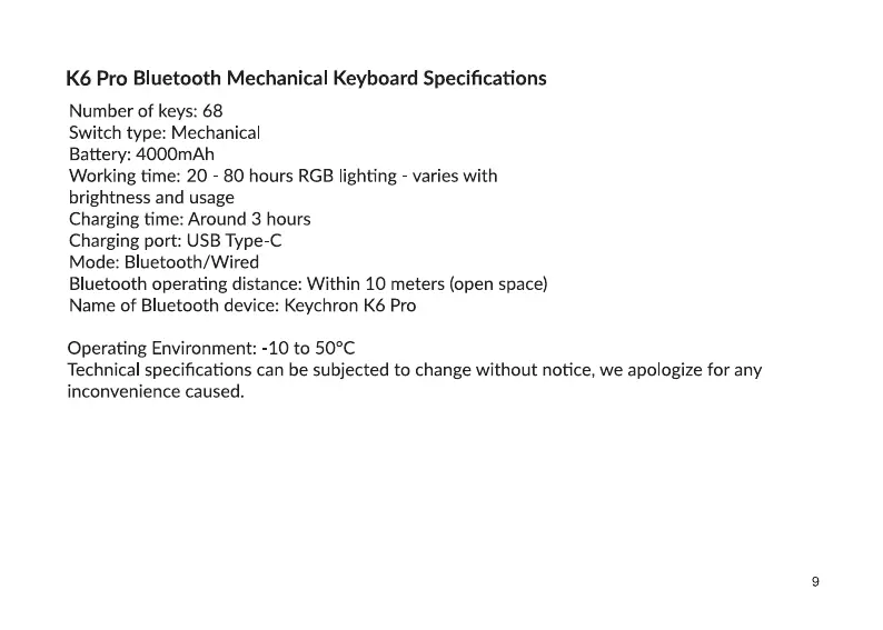 K6 Pro Bluetooth Mechanical Keyboard Specifications