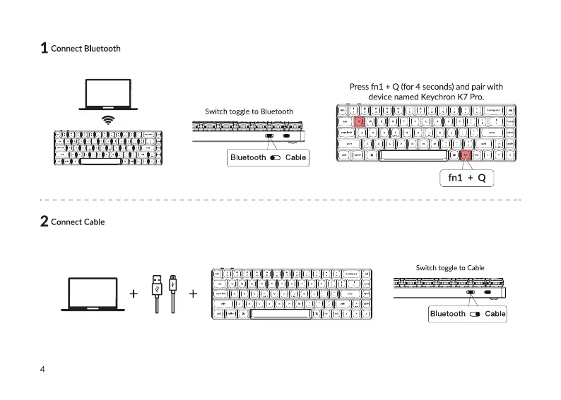 Keychron K7 Pro - Connectivity Instructions; Connect Bluetooth; Connect Cable