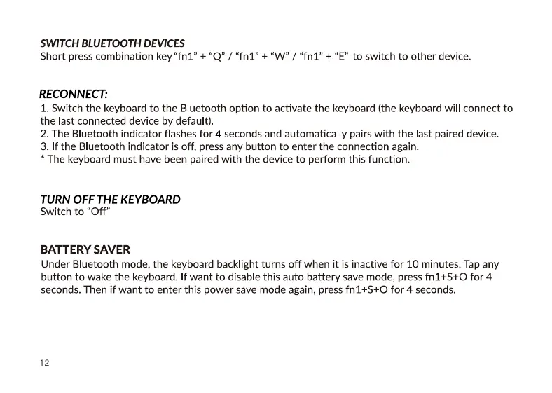 Keychron K7 - Bluetooth Device Management; Switch Bluetooth Devices; Reconnect to Bluetooth