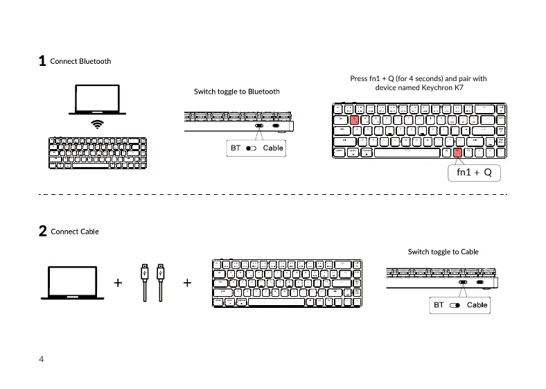 Keychron K7 - Connecting the Keyboard; Connect Bluetooth; Connect Cable
