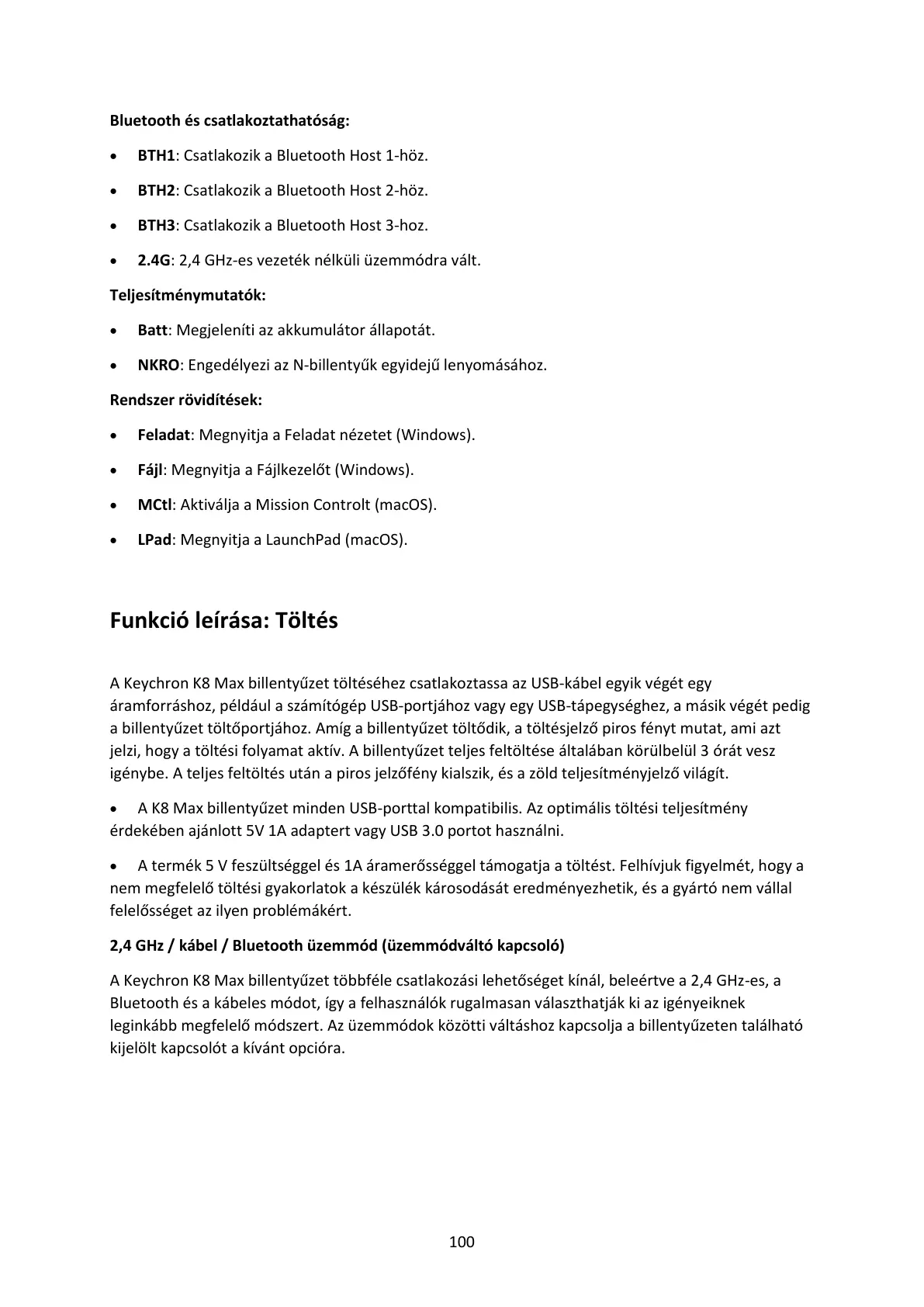jelzi, hogy a töltési folyamat aktív. A billentyűzet teljes feltöltése általában körülbelül 3 órát vesz