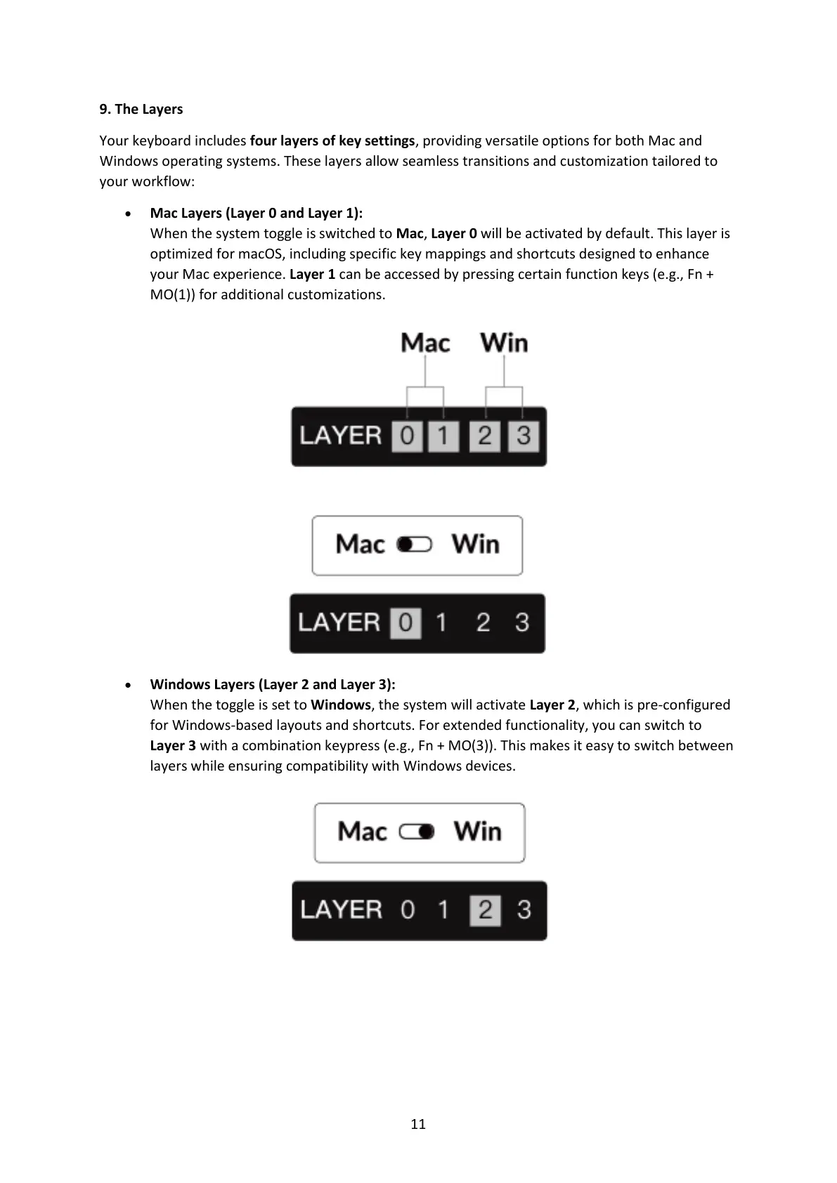 When the system toggle is switched to Mac, Layer 0 will be activated by default. This layer is