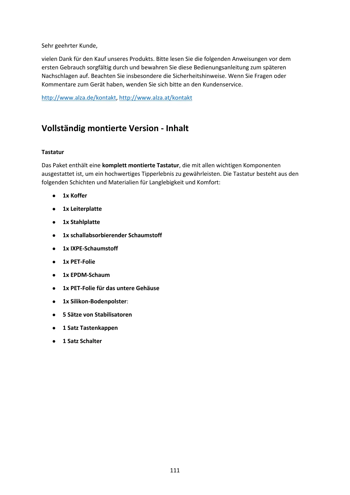 Das Paket enthält eine komplett montierte Tastatur, die mit allen wichtigen Komponenten