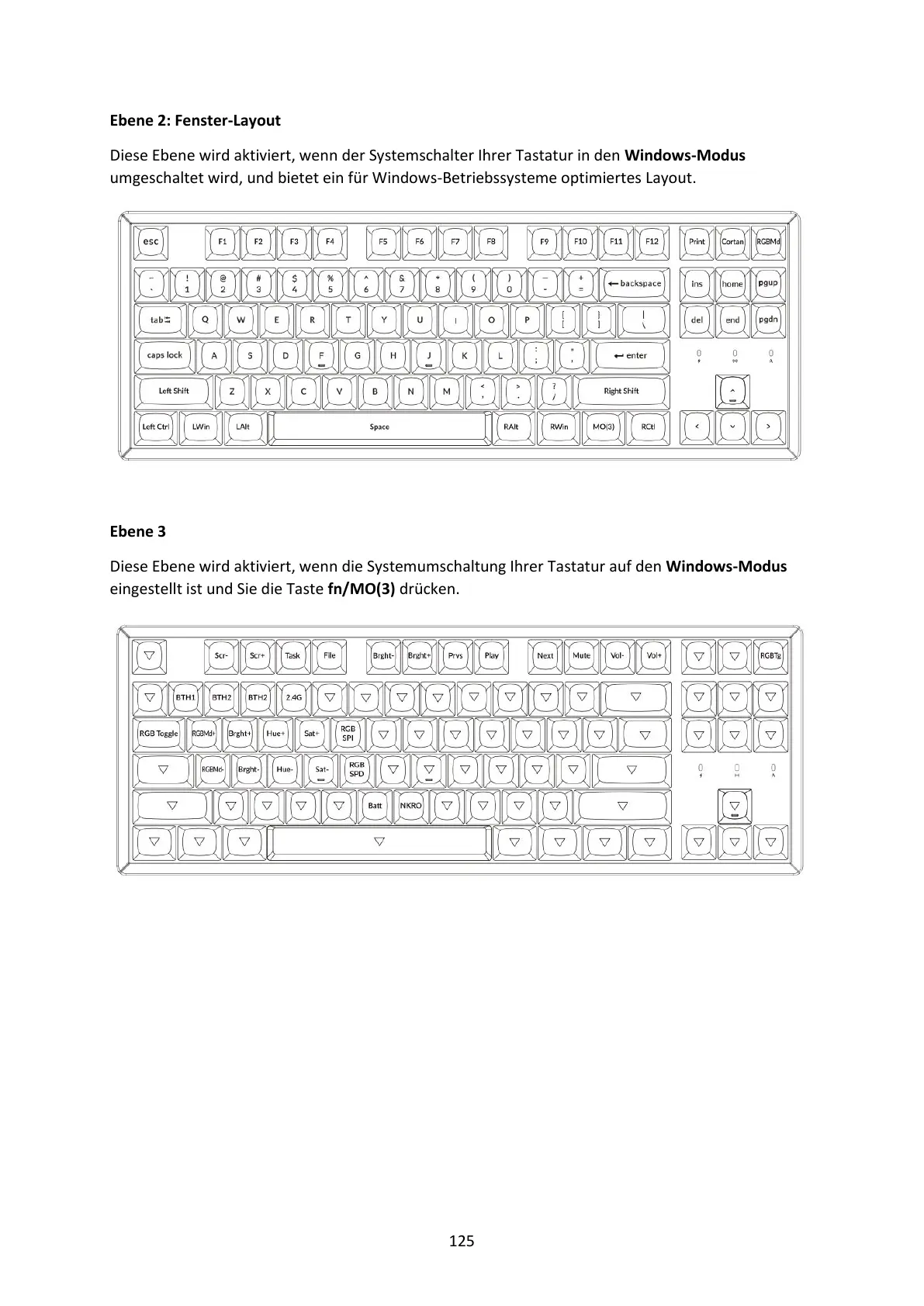 Diese Ebene wird aktiviert, wenn die Systemumschaltung Ihrer Tastatur auf den Windows-Modus