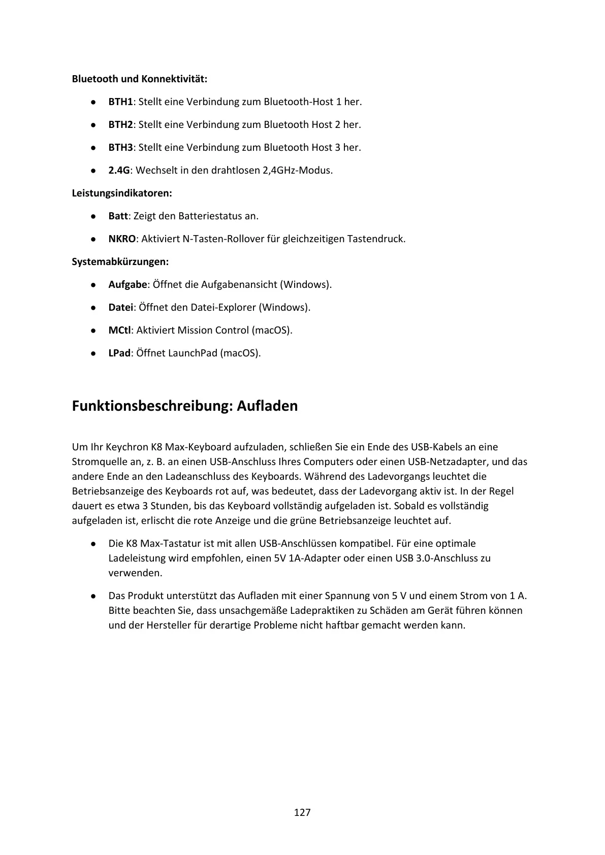 dauert es etwa 3 Stunden, bis das Keyboard vollständig aufgeladen ist. Sobald es vollständig
