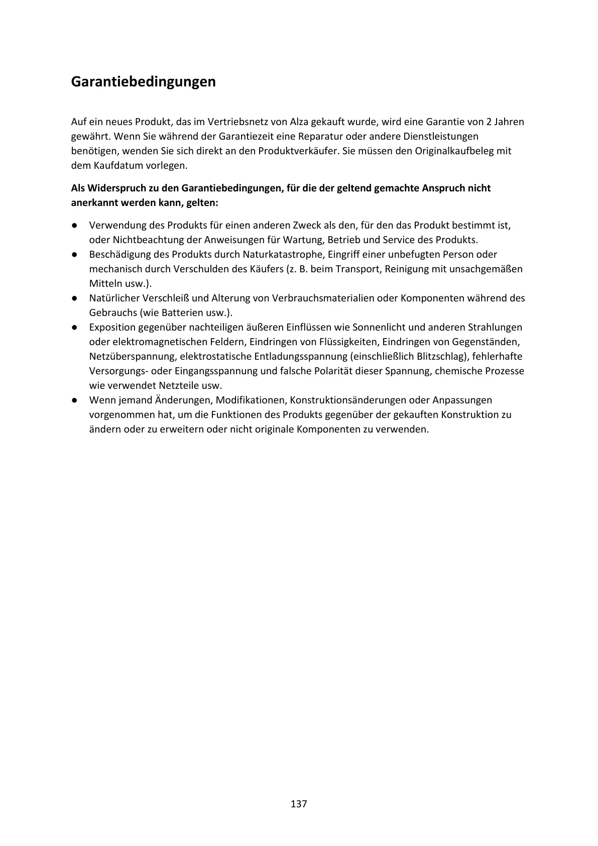Auf ein neues Produkt, das im Vertriebsnetz von Alza gekauft wurde, wird eine Garantie von 2 Jahren