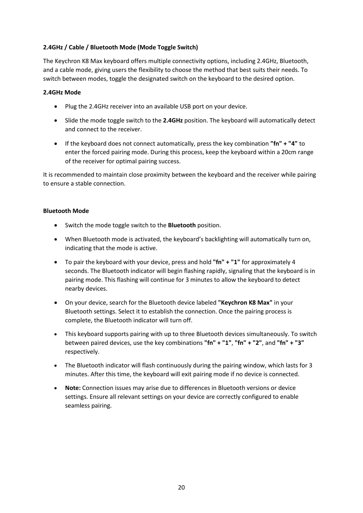 The Keychron K8 Max keyboard offers multiple connectivity options, including 2.4GHz, Bluetooth,