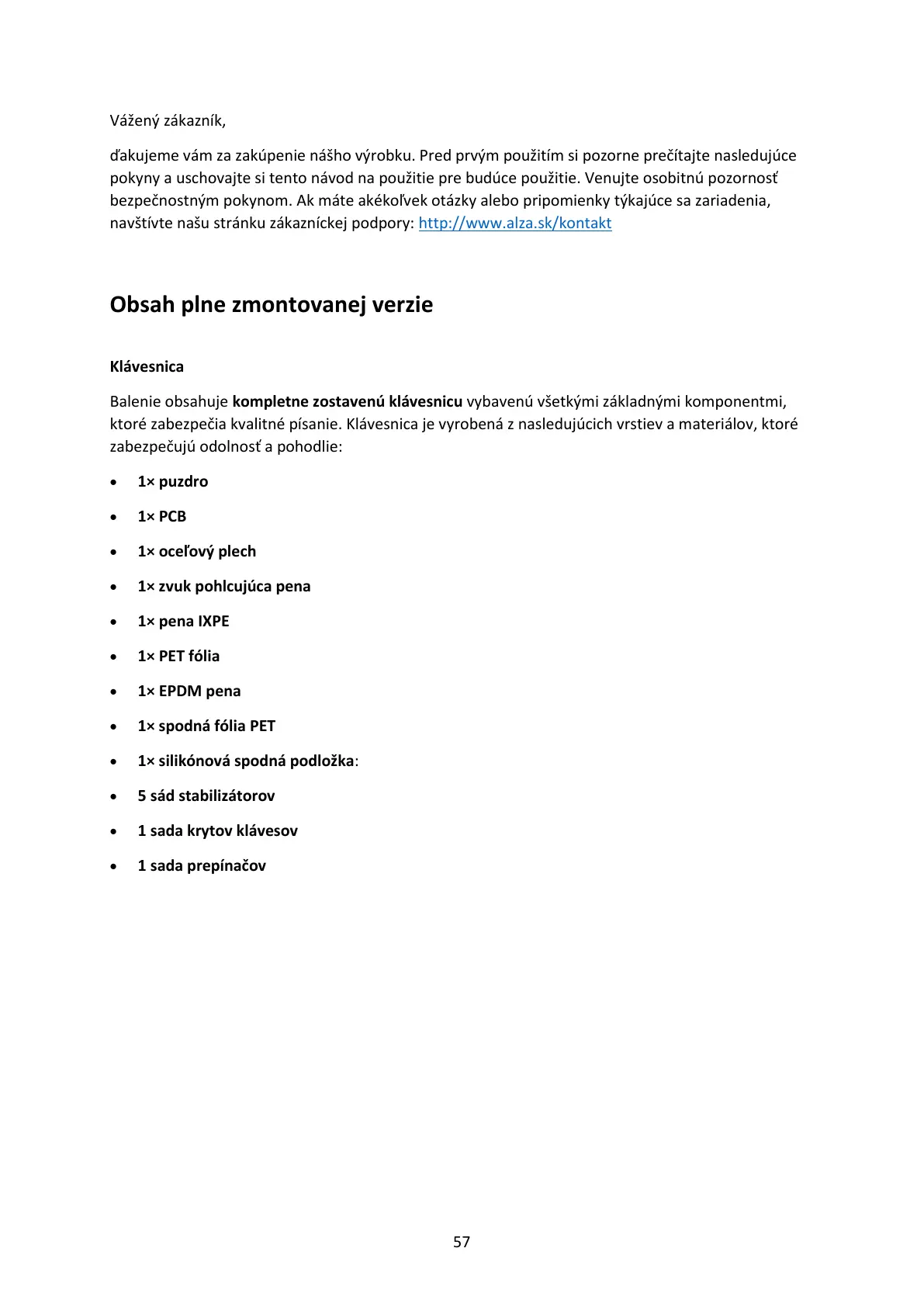 Balenie obsahuje kompletne zostavenú klávesnicu vybavenú všetkými základnými komponentmi,