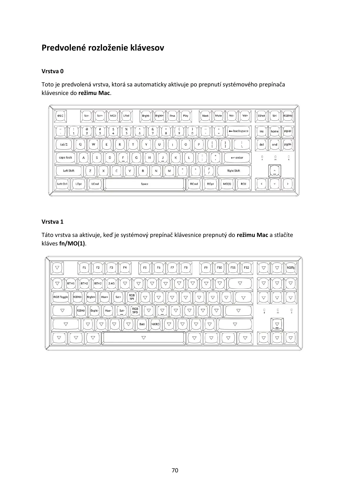 Táto vrstva sa aktivuje, k je systémový prepínklávesnice prepnutý do režimu Mac a stlačíte