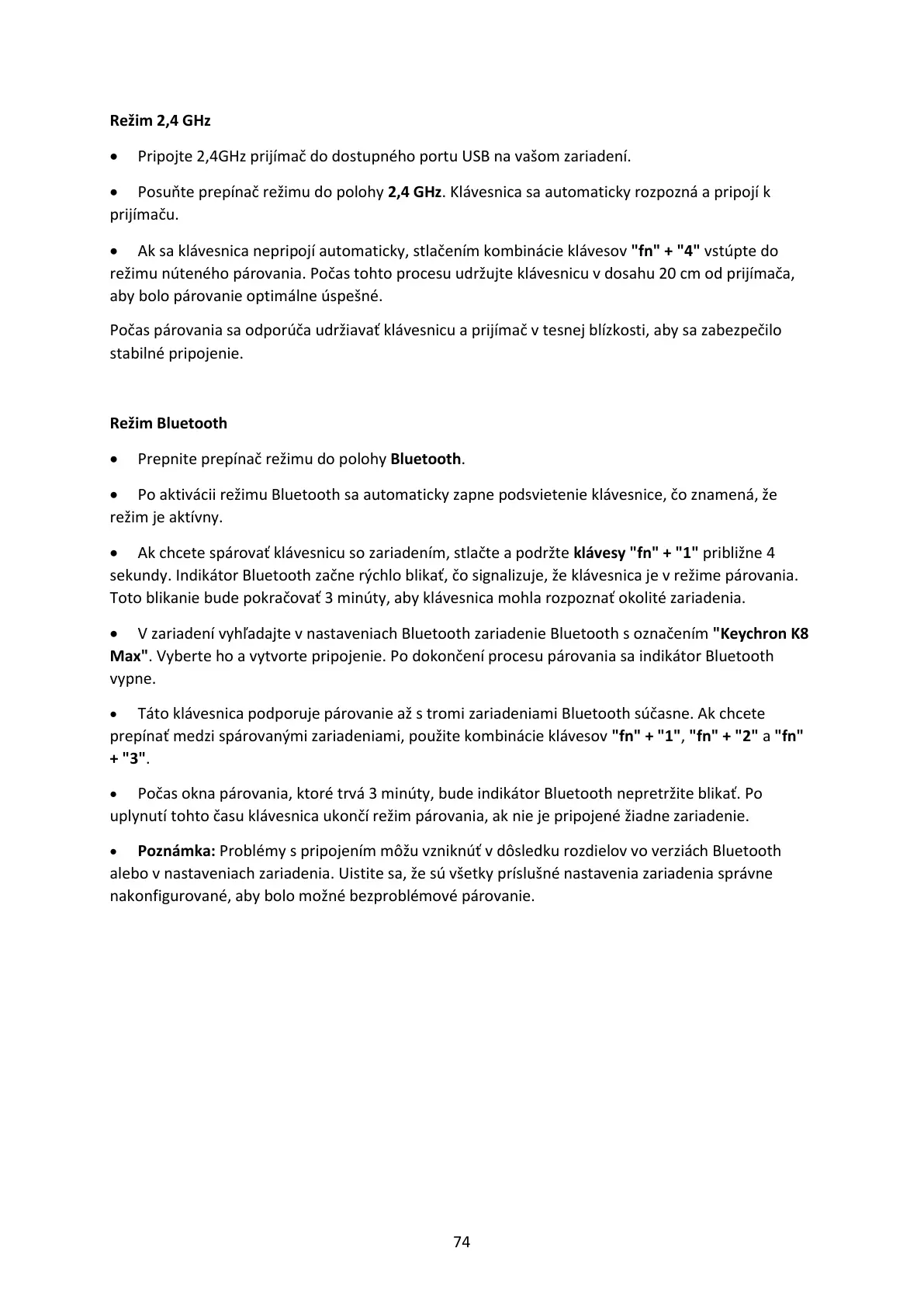 • Táto klávesnica podporuje párovanie až s tromi zariadeniami Bluetooth súčasne. Ak chcete