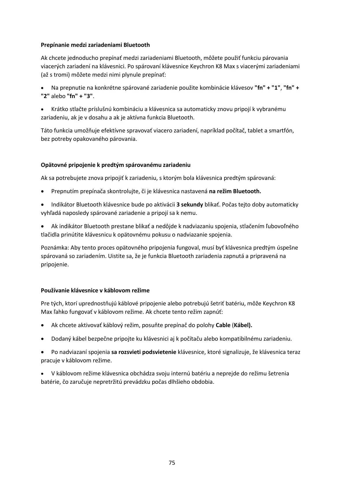 • Na prepnutie na konkrétne spárované zariadenie použite kombinácie klávesov "fn" + "1", "fn" +