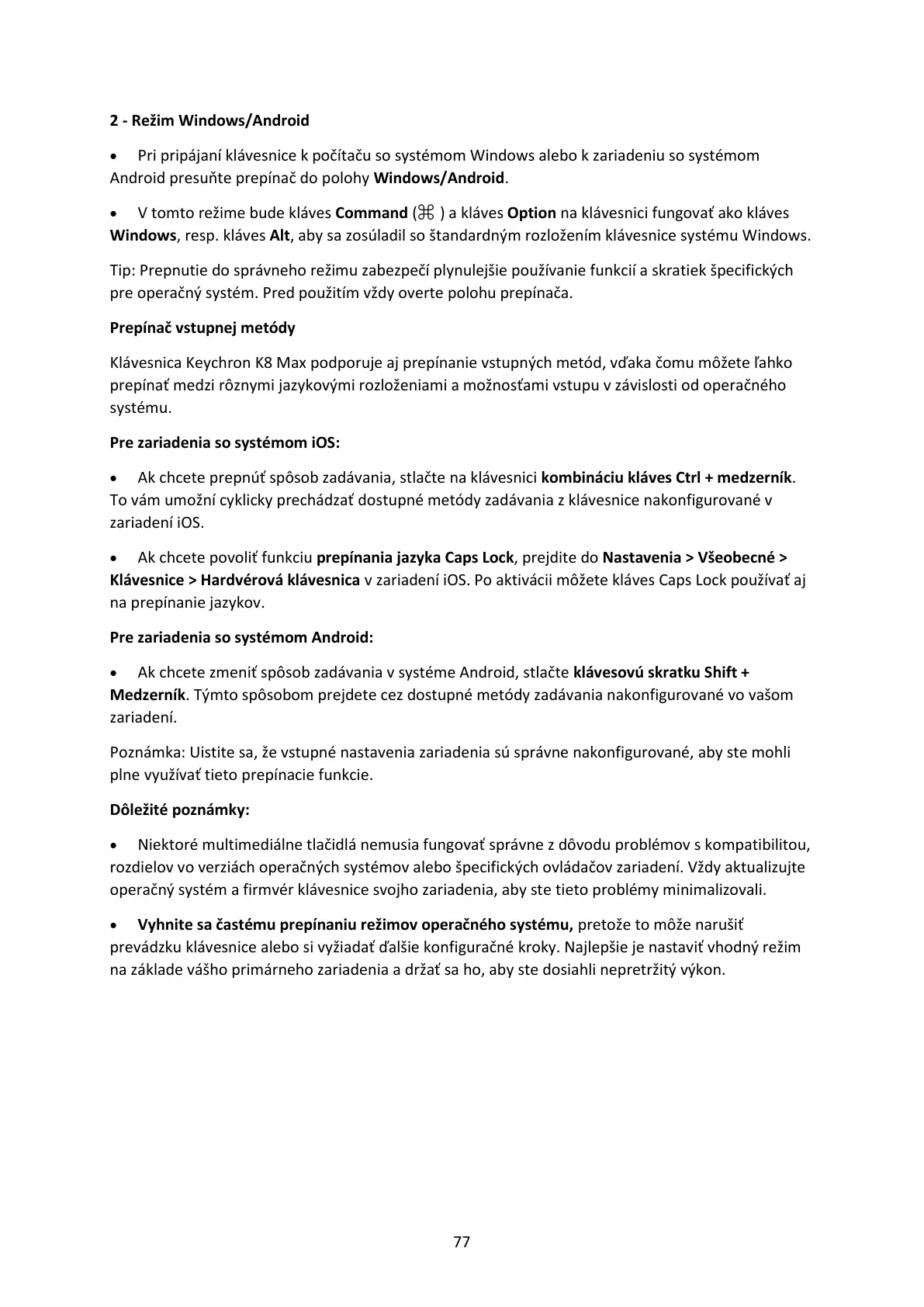 • Pri pripájaní klávesnice k počítaču so systémom Windows alebo k zariadeniu so systémom