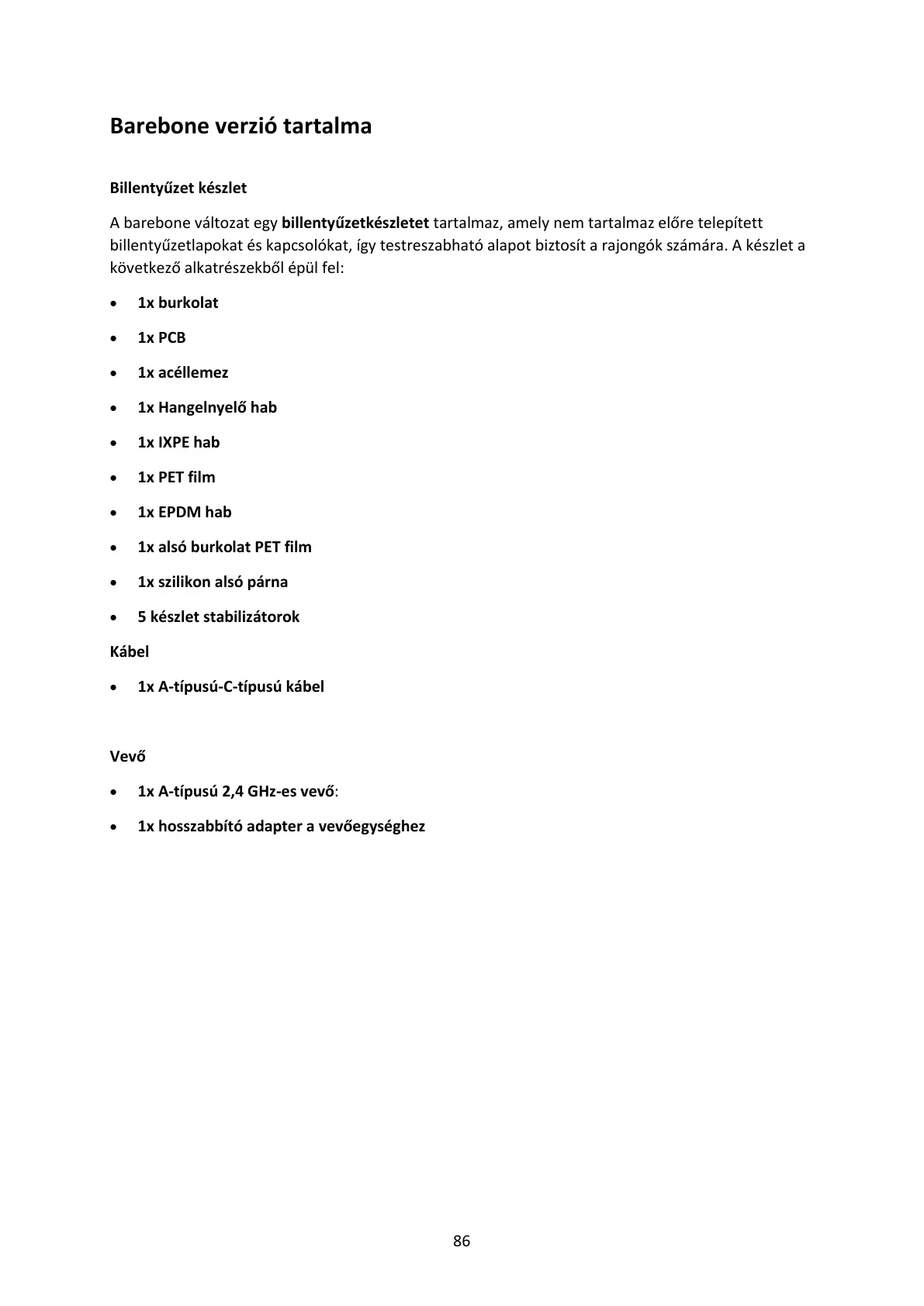 A barebone változat egy billentyűzetkészletet tartalmaz, amely nem tartalmaz előre telepített
