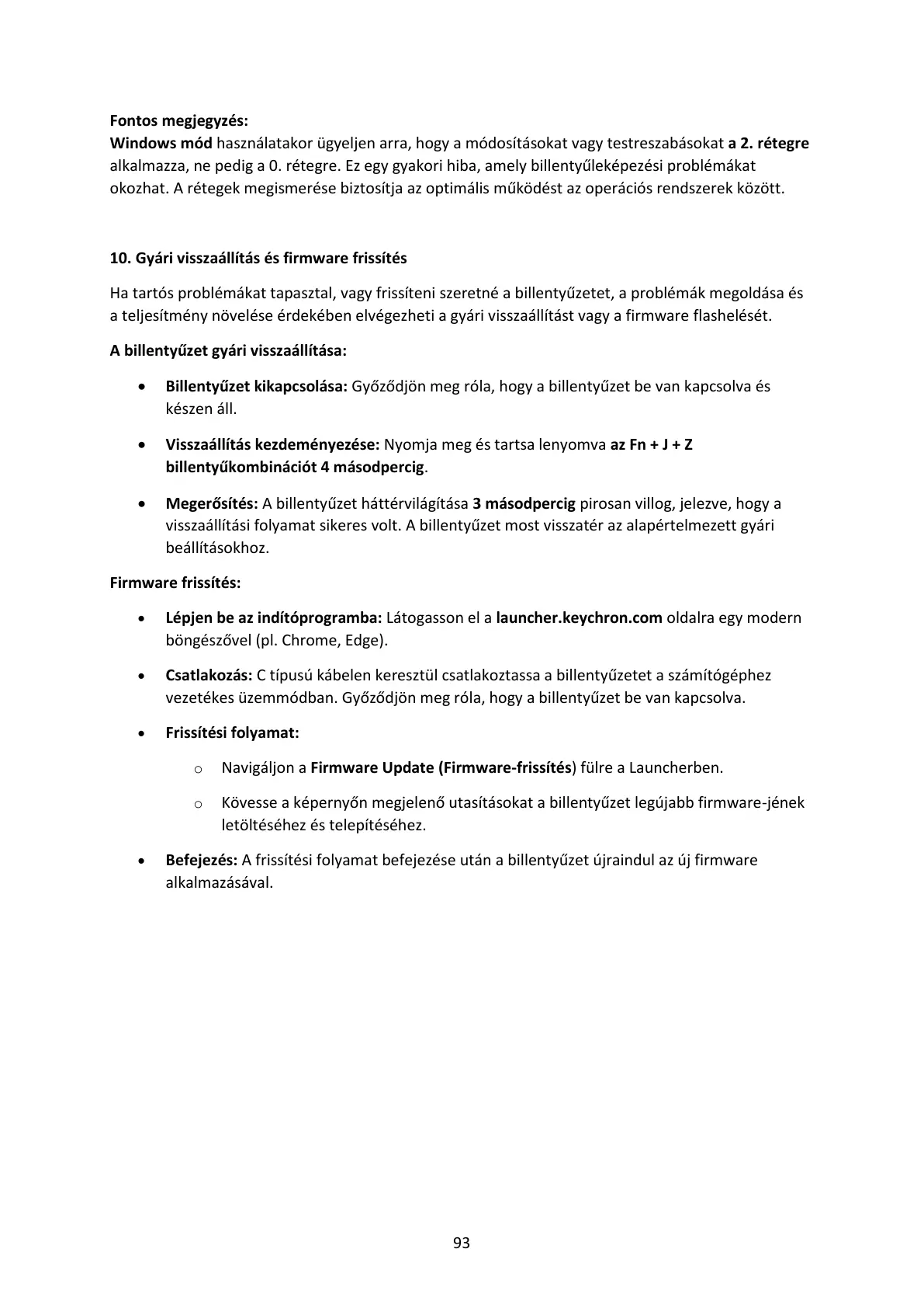 • Befejezés: A frissítési folyamat befejezése után a billentyűzet újraindul az új firmware