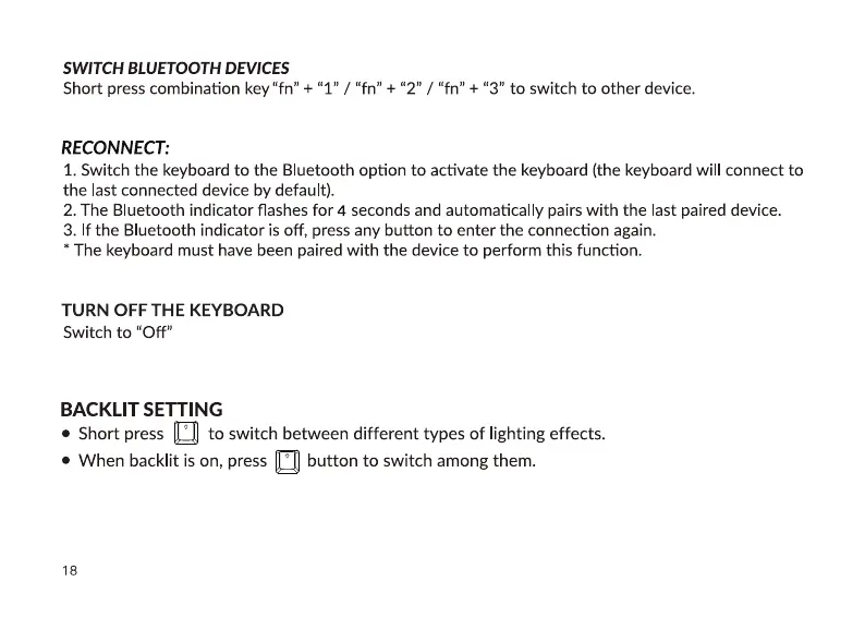 Short press combination key "fn" + "I" / "fn"+ 2 / fn + "3" to switch to other device.