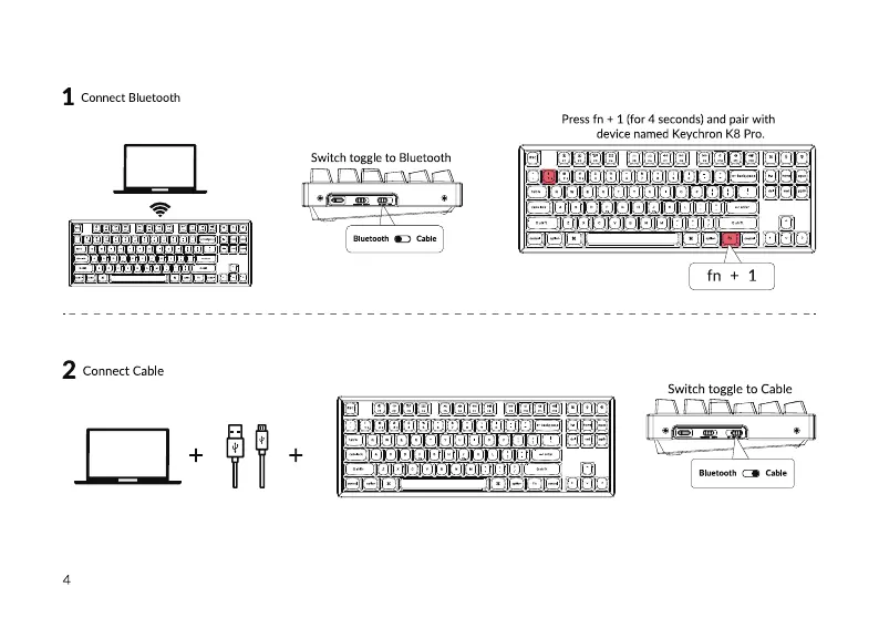 Keychron K8 Pro - Connectivity Options; Connect via Bluetooth; Connect via Cable