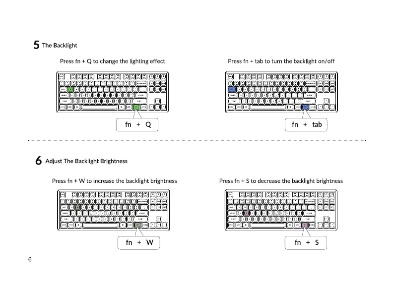 Keychron K8 Pro - Backlight Control; Change Lighting Effects; Toggle Backlight On;Off; Adjust Backlight Brightness