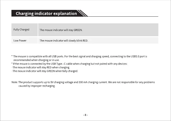 •Themouseindicatorwill stayGREENwhenfully charged.