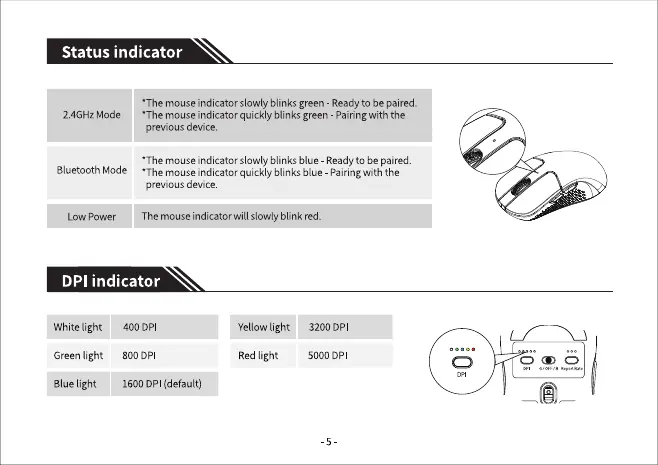 Keychron M3 Mini 4K - Indicators and Status Information; Status Indicator Explanation; DPI Indicator Guide
