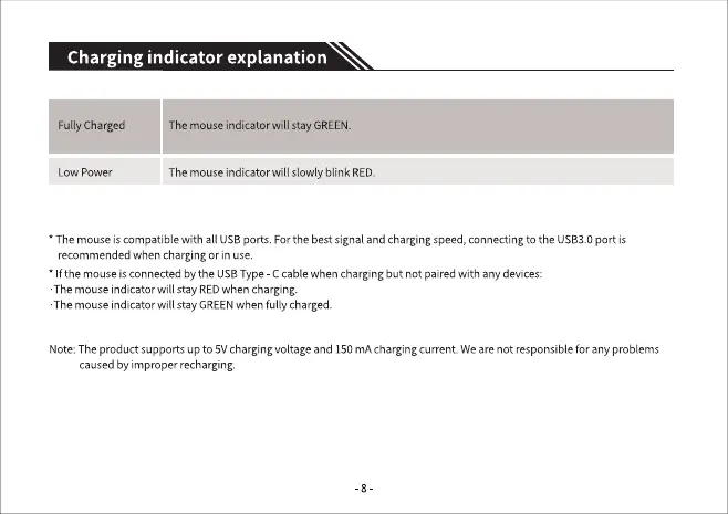 • The mouse is compatible with all USB ports. For the best signal and charging speed, connecting to the USB3.0 port is