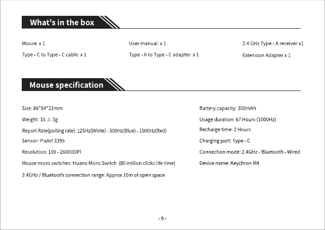 Device name: KeychronMouse micro switches: Huano Micro Switch (80 million clicks life time)
